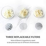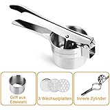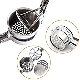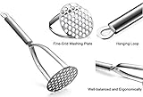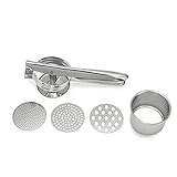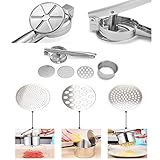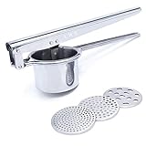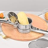 690GRAND - Made to last the amazing potato masher is made entirely out of stainlesssteel and silicone durable and sturdy materials that will not break or snap It is corrosionresistant as well as dishwasher safe for more practicality 3 interchangeable discs with our potato press you can prepare not only delicious mashed potatoes but also baby food squash or soup Its a great kitchen tool that features 3 discs for fine medium and coarse mashing Healthy delicious meals prepare delicious and healthy food for your family and friends with our amazing potato ricer Easy to use and practical this manual potato masher is a musthave tool in any kitchen