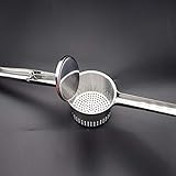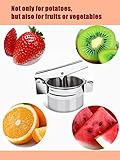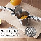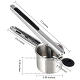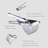 Multiusepotato ricer and masher designed with filter holes its great for making carrot sweet potatoes applesauce and spaetzle etc Not limited to these also perfect for straining fruits citrus lemon orange or mashed baby food Ergonomically designedour stainless potato ricer is more efficient than others The long handles118 inches and reliable design can reduce pressure and tension on your hands and wrists simply press the lever and done