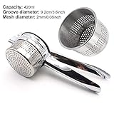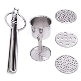 JmeGe - Multipurpose jmege potato ricer with 3 interchangeable discs in finemedium and coarseThe mesh diameter of the discs are 25 mm 5 mm and 12 mm respectively Suitable for all types of fruits and vegetables Premium quality made of the highest quality stainless steel material that is safe for foods durable and sturdy to last for years Largecapacity design pressure tank with large capacity 420ml design 93cm large diameter can hold more ingredients which bottom and side have juice hole can squeezed juice quickly