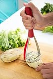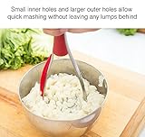 Zyliss - Crafted from premium quality stainless steel with soft touch handle for secure grip Features small inner holes and larger outer holes for quick mashing without leaving any lumps behind Features integrated hanging hook for easy storage Integrated silicone bowl scraper removes everything you mash from bowl for less waste Dishwasher safe