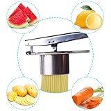 This potato masher is very easy to use put in wellcooked potatoes or sweet potatoes or pumpkin or yam or fruit like lemon orange watermelon without skins then press the lever down and lump free potato pumpkin fruit juice comes out of the hole To be a potato or pumpkin squeezer the ricer potato masher would not take a lot of force to get the puree to be a fruit squeezer or juice squeezer it need to use some effort to squeeze the lemons or fruits