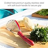 Tafond - easy to clean storage since stainless steel hand potato masher does not hold residue or leftover odor all it takes is a thorough rinse under tap water or mildly hot water to get it ready for next use Rinse immediately before starches harden dishwasher safe for thorough cleaning Perfect size of 1122×354 to fit in your kitchen drawer and the stainless steel ends allow for easy hanging on any hook in your kitchen allowing for easy storage advantagesergonomic design soft touchgood balance the handle accords with ergonomicsFine holes are easy to hang and save spaceBeautiful smooth edge designlong service life not easy to rustVery easy to clean after use