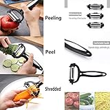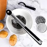 Peeler and precautions multifunctional peeler which can peel thick skin thin skin shred three in one very practical every kitchen should have one we have helped you think of it It should be noted that when making potatoes ricer the food must be fully cooked Unprocessed food is difficult to squeeze and can damage the masher Please protect your hands carefully 100 customer satisfaction guarantee we have been committed to providing the highest quality and most practical products ensuring the quality of the products so that you are 100 satisfied we may give you a small practical gift we can also help at any time and accept your return please rest assured to buy