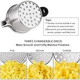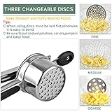 Stainless Steel Potato Ricer, Potato Masher with 3 Fineness Discs