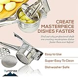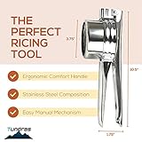Tundras - Comfortable ergonomic design the easy grip handles are designed to reduce pressure stress and tension on your hands and wrists as you mash with ease Just place the food in the slot and press Super easy to clean our ricer is dishwasher safe so you can place it right in yours and have it spotless within minutes The disks are removable so you can rest assured everything will come out just fine Stainless steel composition incredibly durable and longlasting construction that is sure to rice even the toughest of potatoes with ease It wont dent bend or break so you can use it many times