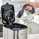KRUPS - Modern design seamless stainless steel accents with minimal footprint Water tank window easy fill with exterior water window Simple operation one touch start button in the front a dedicated onoff lighted button on the side Easy brewing large permanent coffee filter basket holds 10 cups worth of coffee grounds