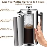 Hold heat in our insulated french press with 1810 stainless steel doublelayer vacuum structure not only keeps the coffee warm for a long time but also keeps the handle cool when brewing so there is no risk of burns Take your time and savor every delicious sip the coffee will still be hot when you are ready for a refill