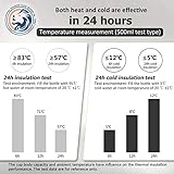 Premium insulation property hightech vacuum doublewall stainless steel rustproof 304 stainless steel insideoutside construction bpa free At room temperature of 20 fill the bottle with hot water of 95 After 24 h the water temperature is 57 Fill the bottle with ice water at 3 After 24 h the temperature is 12 Portable for carry around best hydration travel bottle for sports fitness gyms hot yoga cycling or to the office or school Odor resistant togo drinkware for you