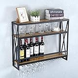 GWH - Integrated wine rack the 3layer shelf design with 8 stem glass holder gives you plenty of room to store wine wine glasses and other accessories Size length 315 x height 244 x depth 787 inThe thickness of the board 078 in Easy to assemble with the instructions but the product is heavy the assembly requires two people to collaborate Distressed decor industrial iron and baking varnish reclaimed wood