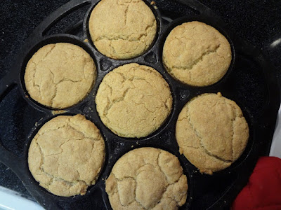 ...and then I did some food prep... ...vegan cornbread muffins for the coming week...I just keep them in the fridge and use them up throughout the week...Probiotic Version here...and an older version without the probiotic here......I baked a half of a carrot cake...just the Man and I have a hard time eating up a whole cake... ...and I forgot to take a pretty photo of it when I took it out of the oven...so I flipped it back over...but the cooling rack had made divots in the top...oh well... ...I cut it in half and iced it with vanilla buttercream...I started to use up the leftover Julia Child Lemon icing...Vegan Crème au Beurre au Citron...but the Man put the ixxx-nay on that idea... ...I froze a bunch of little muffin cups of Instant Pot beans... ...then I just dipped the muffin pans into some warm water... ...and dumped the frozen cups out onto a tray... ...and bagged them up to go back into the freezer...I just love having these on hand... ...I made some vegan yogurt...blackberry this time... ...I love having this for breakfast... ...and I also made some more tofu chocolate pudding... ...when I was chatting with Mom on the phone...she mentioned the bushel of kale she had just picked from the garden...and that made me jealous...but it also reminded me that I had put a bag of kale in the freezer to keep it from going bad...so I got that out and into the Instant Pot with some 'Greens Seasoning'... ...while that was steaming - it doesn't take long...I whipped up a batch of vegan cheeze sauce...no real recipe...I just dump cheeze-y things into the blender...this batch is cauliflower, carrot, nooch, miso, tahini, sunflower seeds, hemp seeds, a little bit of mustard, salt, AC vinegar, sauerkraut juice and a little bit of lemon juice... ...it turned out delicious...and I'll be pouring it over things I eat all week... ...then the greens were done... ...oh...and inspired by Bean...she blogs over at Bean's Life...I started to re-grow a little organic lettuce stub...I have re-grown lettuce before...but not for quite a while...