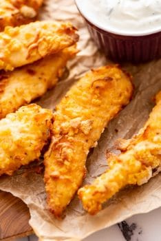 When it comes to game day entertaining, chicken fingers are always on my list! Heres the good news, you can skip the frying but still have amazing crispy chicken!