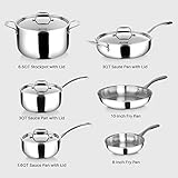 Duxtop Whole-Clad Tri-Ply Stainless Steel Induction Cookware Set, 10PC Kitchen Pots and Pans Set