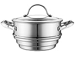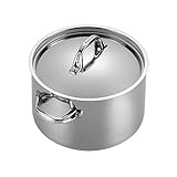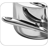 Cooks Standard - Made of 1810 stainless steel with an aluminum disc sandwiched in the bottom Induction compatible and works on gas electric glass ceramic halogen etc Riveted handles are durable comfortable and stay cool to hold dishwasher safe Aluminum disc layer in bottom for even heat conduction and prevents hot spots Tempered glass lid makes viewing food easy oven safe to 500f glass lid to 350f