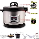 Allinonecooker pressure cooker and slowcooker also comes with 12presets soupbroth meat stew bean chili poultry rice multi grain porridge steam slow cook yogurt saute and manual to make cooking easier and better For the entire family 6quart cooking capacity to prepare meals for the entire family Nonstick titanium interior surface metal utensils safe Size 13 13 144