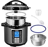 YEDI HOUSEWARE - Xl size 9 appliances in 1 pressure cook slow cook sauté steam make cakes pasteurize make yogurt cook rice and warm all in one electric appliance Its perfect under pressure Deluxe accessory kit included is a tempered glass lid perfect for slow cooking and sautéing 2 egg rackssteaming trivets ladle rice paddle cooking mitts extra silicone sealing ring stainless steel steaming basket stainless steel inner cooking pot and a measuring cup 15 instanttouch microprocessor cooking programs poultry meatstew beanchili soup sautésear cake rice egg multigrain porridge steamveggies slow cook keep warm yogurt and pressure cook manual setting Unlike most other cookers on the market ours also gives you the flexibility to manually input cooking times and set different pressure levels as desired