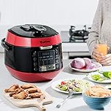12in1 multifunctional design this pressure cooker has multimultifunction including rice porridge chicken meat soup etc And you can choose different taste of food for less normal and more chewiness Just press a button it will prepare food in a short time to support busy workday
