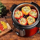 2 dishes simultaneously accessories included we have included a bonus stainless steel steamer basket which allows you to cook 2 dishes at the same time as well as an extra silicone gasket ladle and measuring cup saving you time and money