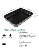 Heavyweight carbon steelthis roasting pan is made from chicago metallic for superior heat conductionthe nonstick coating for ease of baking and clean upThis pan is dishwasher safe however handwashing is recommended to extend the product life Extra capacity15 by 11 inch big enough to roast 4 big chicken legs at the same timeor whole chicken or turkeyThe pan can in your grillsmokerIt fit the oven which interior dimensions oven 1713 and fit kamado grill like large xlarge big green egg and kamado joe classic and big joe or other kamado